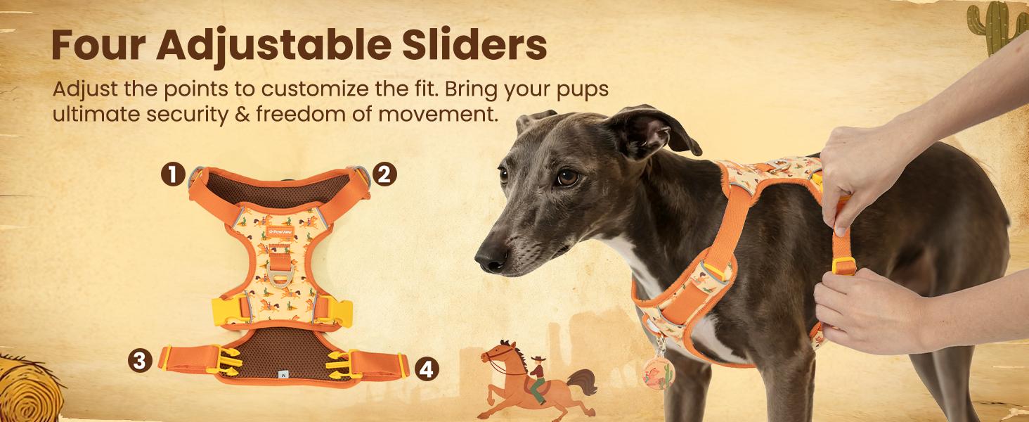 PawView Western Cowboy Travel Print Series Harness with Smart Pet ID Tag